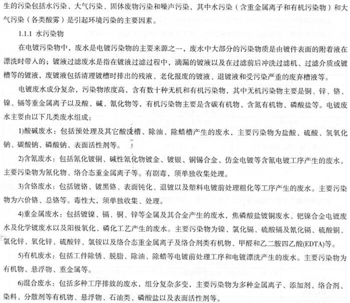 一般的电镀生产工艺由前处理、电镀和后处理工艺三部分组成,每个工艺一定程度上都是污染物产生,产